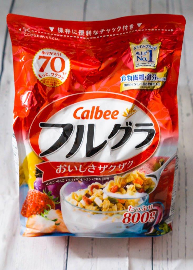 Before I went to Japan, I asked one of my best friends who visited Japan for some Japanese snack recommendations, and she introduced me to Calbee Fruit Granola Breakfast Cereal. It is granola cereal made by Calbee that contains brown rice, dried fruits and nuts. Marketed as a healthy product, but we all know that it is not exactly 100% healthy but still, they are too tasty not to try them.