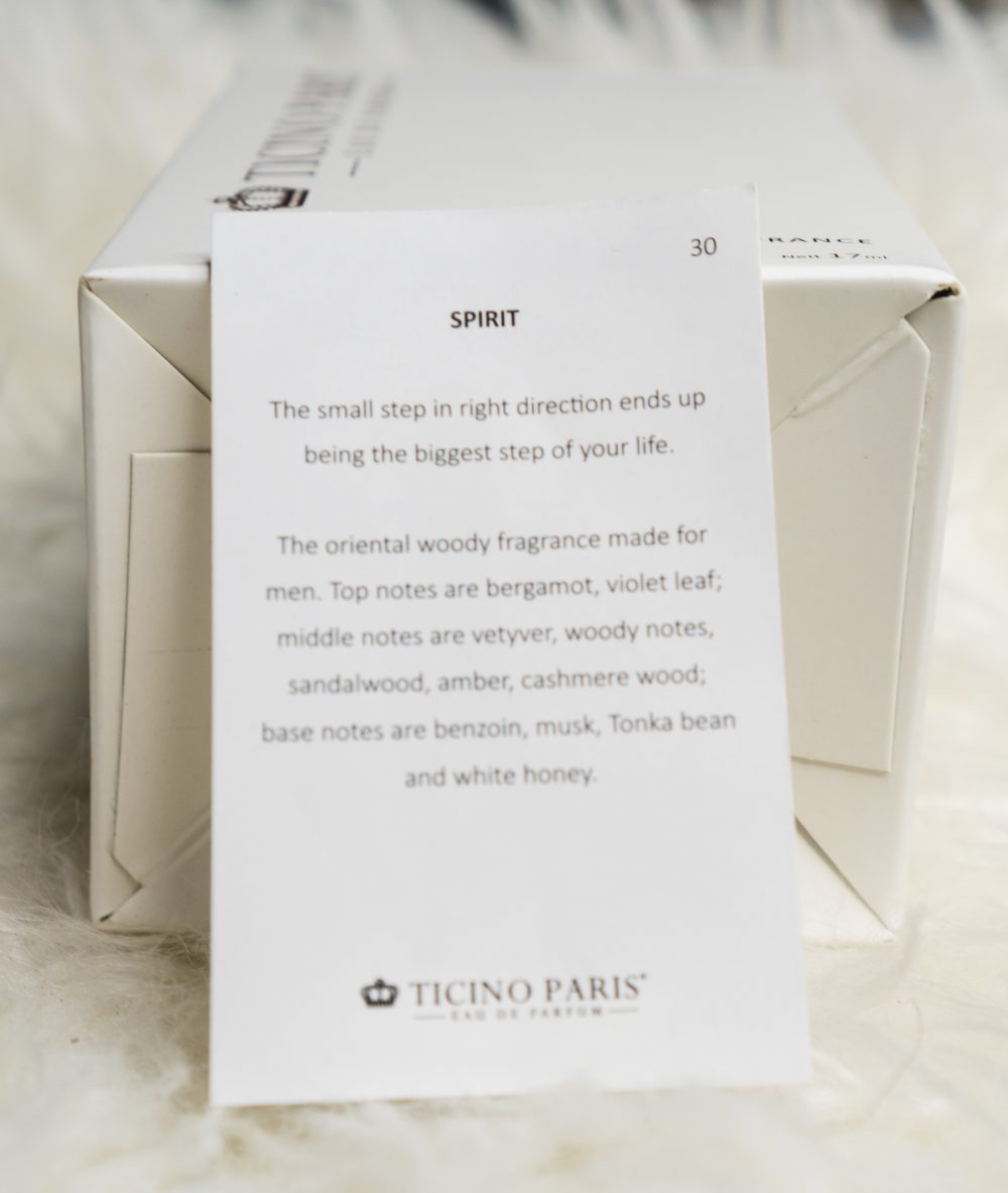 The packaging of Ticino Paris perfume is simple yet elegant. It comes in a glass cylinder bottle with an information card that contains perfume application, description and ingredients and has two different sizes to offer which are 17 ml and 32 ml. The size is certainly a perfect companion for your handbag and for use when travelling. Additionally, the small size allows you to explore more collections of fragrances and the option to have more fragrances is ideal for mood changing and various occasions. For example, you will not want to use the same fragrance that is suitable for the day time for your date night because different fragrances match different occasions.